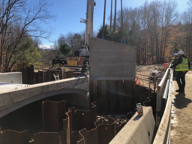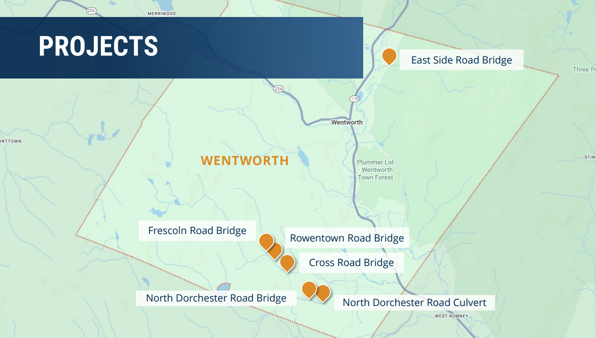 Frescoln Road Bridge: Through State and Town funding, the existing bridge over Rocky Pond Brook will be replaced by a precast concrete arch bridge, roadway reconstruction, guardrail installation, stream restoration, and stream bank stabilization. These mitigation measures would meet the hydraulic requirements and intend to prevent further flooding and damages to Frescoln Road. This project is progressing through the NHDOT State Aid Bridge (SAB) Program through the Bureau of Planning and Community Assistance (BPCA). Construction by R.M. Piper has begun with completion scheduled this fall, 2025.